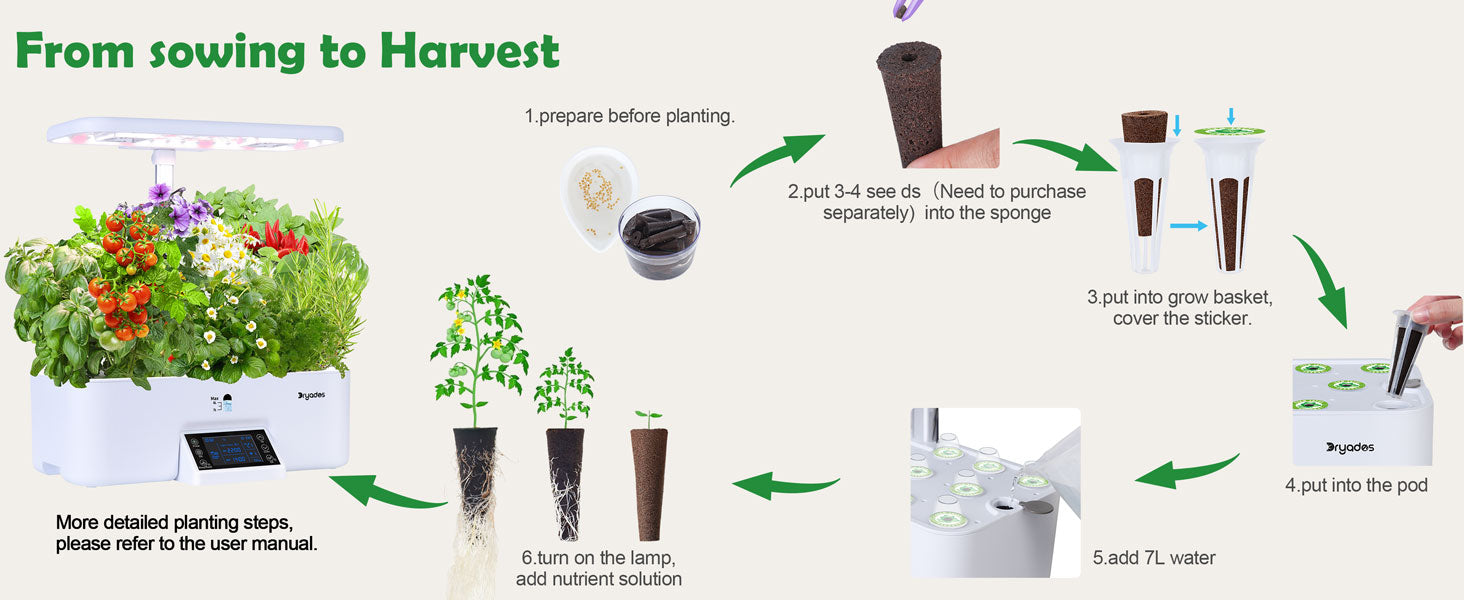 - Vegetables mode: Increase the proportion of blue light, inhibit the growth of stems, and promote the growth of leaves,fit with green leafy vegetables like Lettuce, basil.