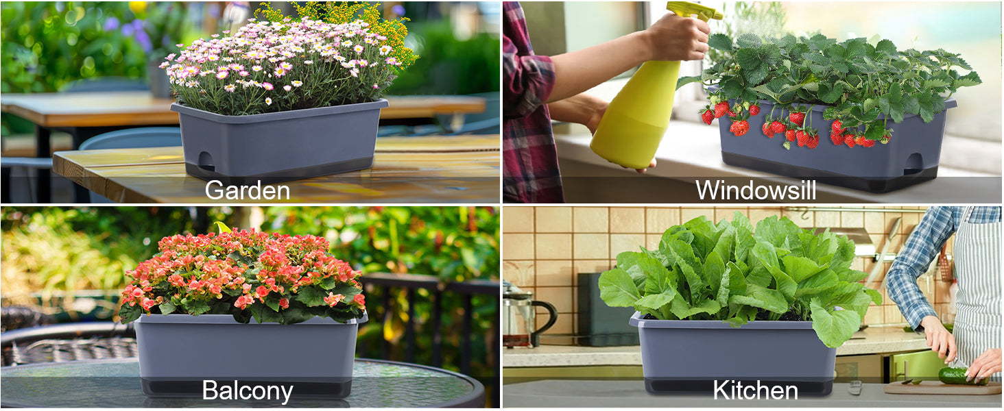 • 【Premium & Durable】The planter pots are made of high quality PP material and has been thickened to bear up to 150KG (330LB). This window box planter is sturdy, wear-resistant and durable. It can be exposed to light, wind, and sunlight for long periods of time, with a lifespan of decades. It is an excellent planter box for both indoor and outdoor.